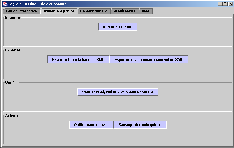 Gestion des traitements par lot [haut du document] Il s'agit de déclencher des programmes d'import, d'export et vérification.