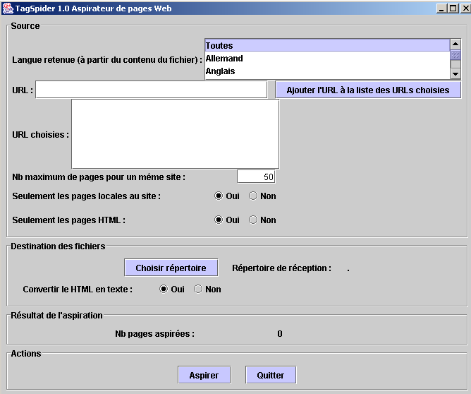 | TagSpider est un aspirateur de pages Web.