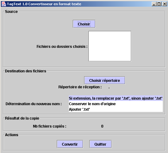 TagText accepte n'importe quel format en entrée mais ne traite que ceux qu'il est capable de convertir. L'algorithme de sélection est le suivant: